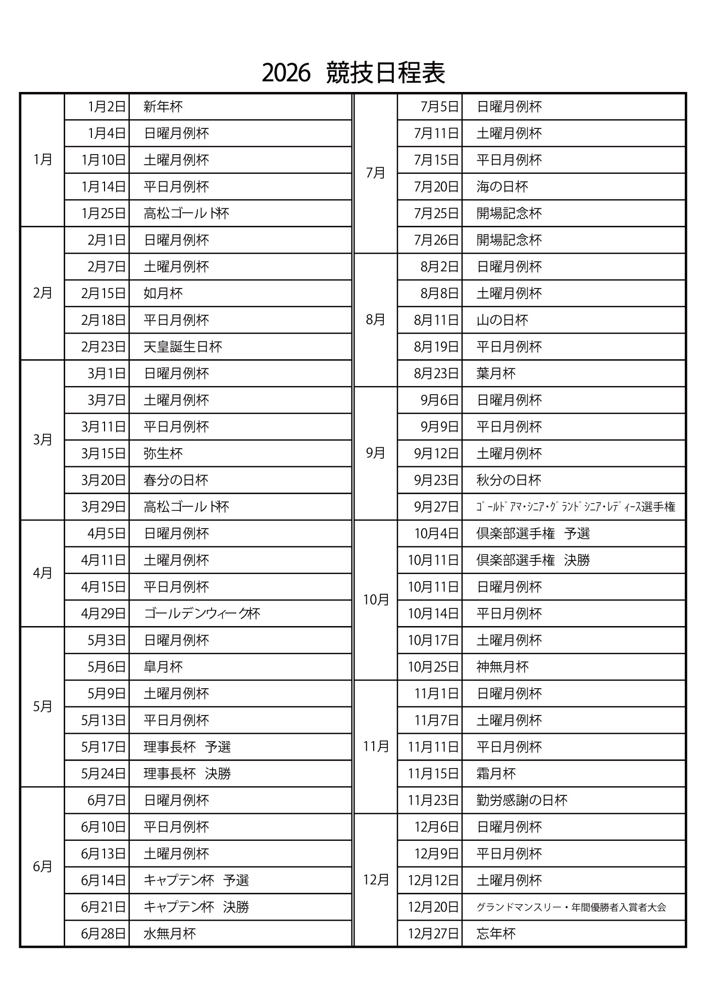 令和8年競技日程